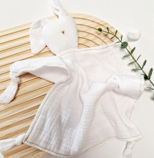 Realizzato in morbida mussola di cotone e imbottito con soffice ovatta, questo dolce Dou Dou diventerà un simpatico compagno di giochi e un aiuto prezioso durante il sonnellino.