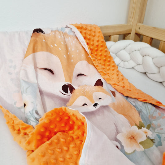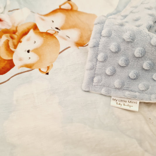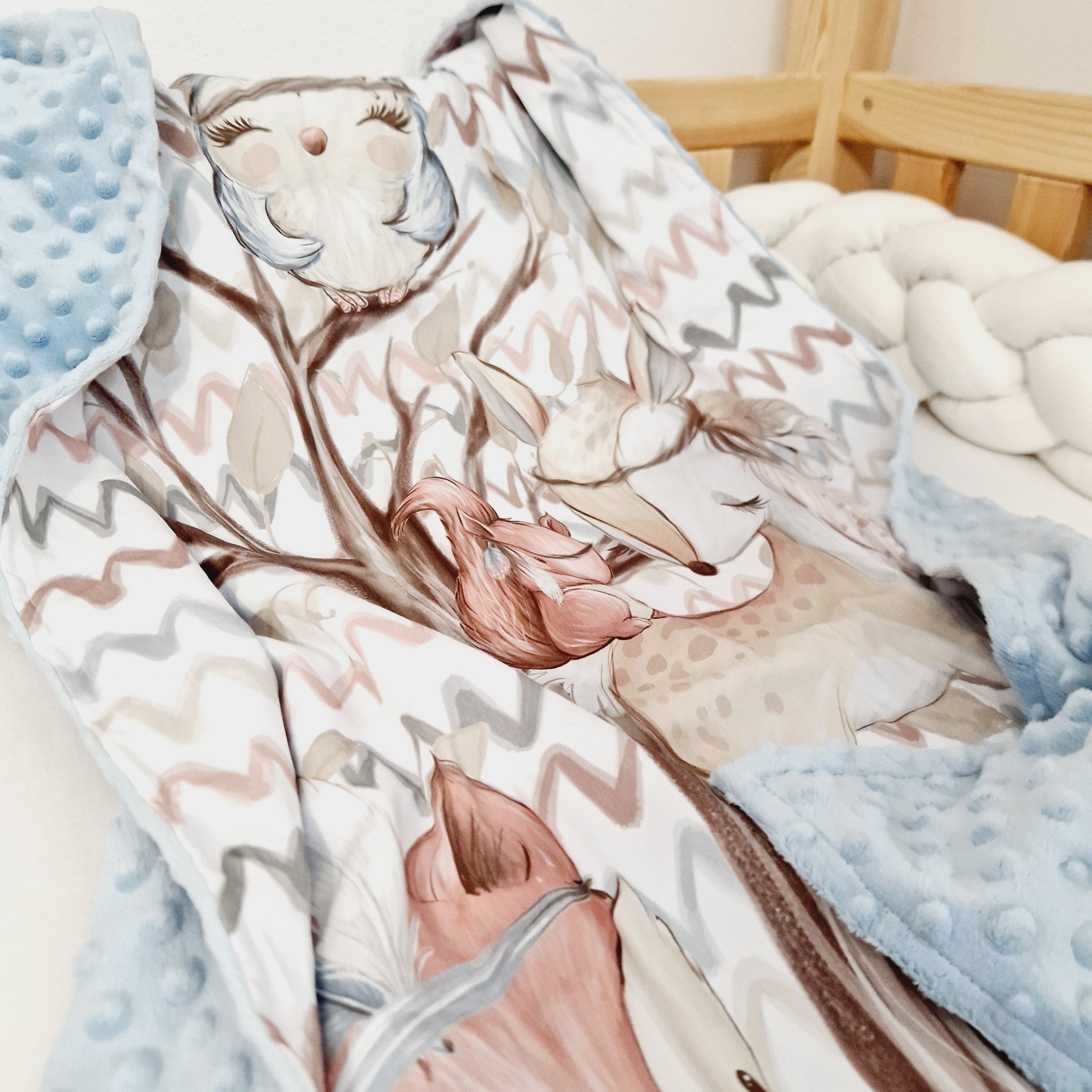 Scopri la nostra collezione di morbidissime copertine, composte da un lato in cotone di alta qualità e l'altro in morbidissimo Minky per avvolgere il tuo bambino in un soffice e caldo abbraccio.