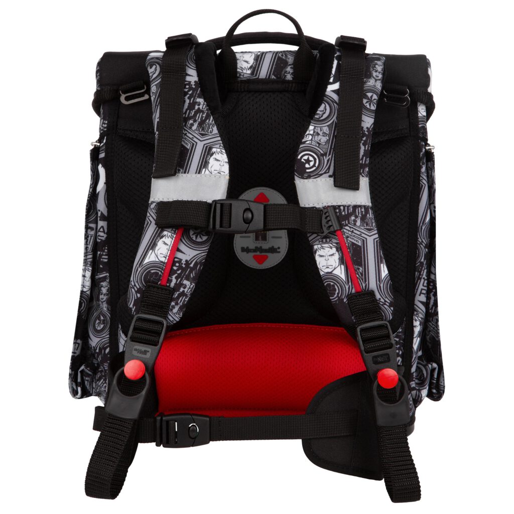 - Inoltre, nello scomparto principale 9 passanti in gomma per matite, gomma per cancellare, righello ecc. e 1 scomparto con chiusura a strappo