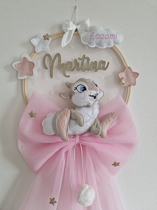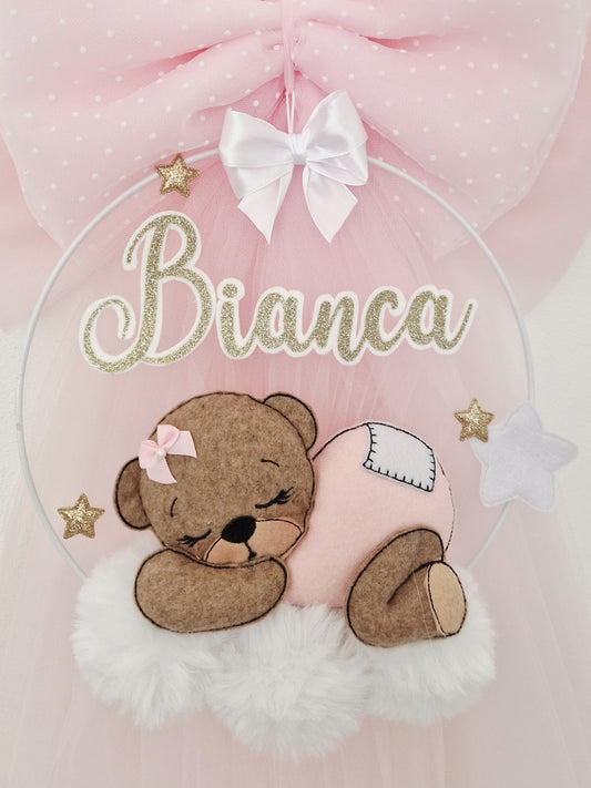 Sorprendi tutti con il nostro dolce fiocco nascita realizzato interamente a mano e curato con amore nei dettalgi. Un regalo perfetto per esprimere la gioia e l'amore di una nuova vita! Non è semplicemente un fiocco nascita, ma un incantevole modo per decorarla cameretta della tua bambina, trasformandola in un luogo unico e magico. Rendi ogni momento ancora più speciale con questo tocco di magia.