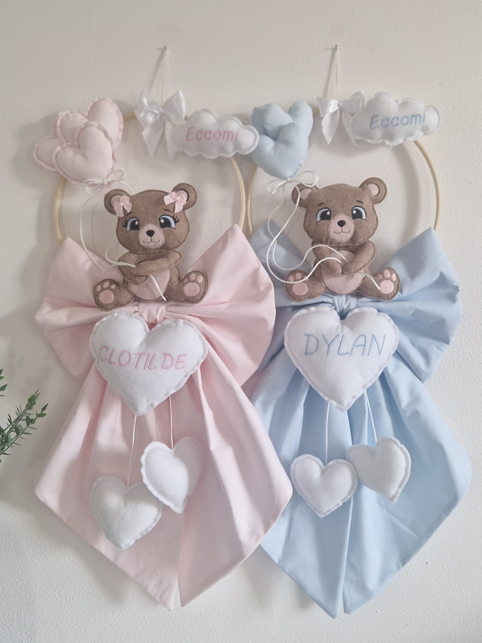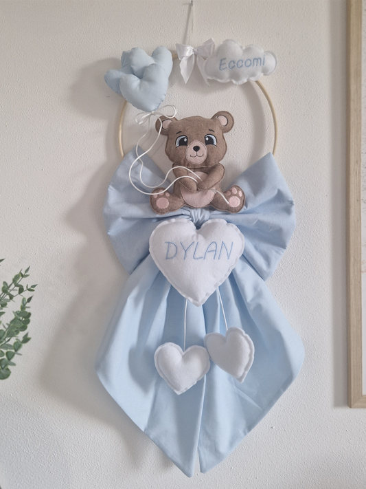 Fiocco nascita orsetto Blu personalizzato con nome fatto a mano
