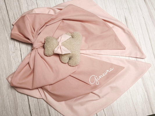 Fiocco nascita orsetto Rosa personalizzato con nome fatto a mano