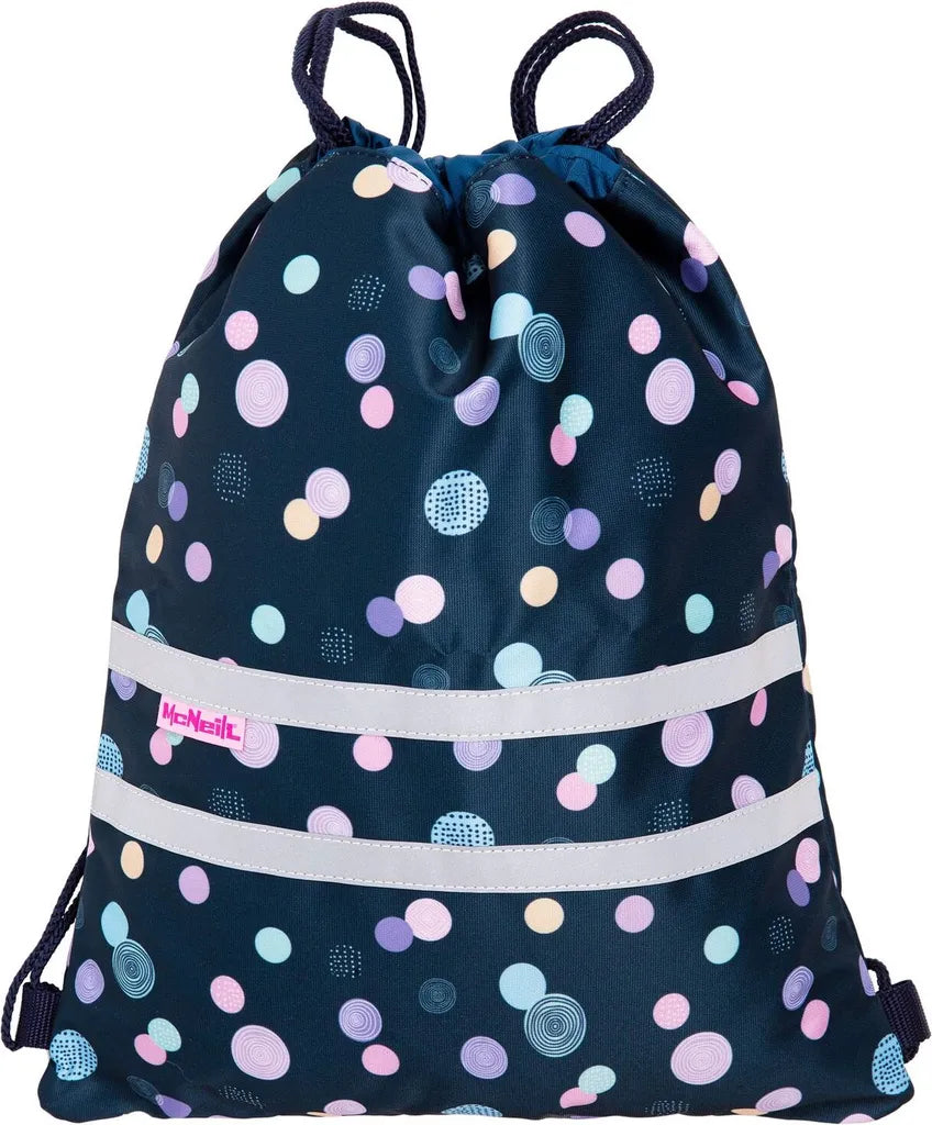 La borsa da ginnastica è dotata di una comoda chiusura a coulisse con cordoncino e sul retro possiede uno scomparto con cerniera.